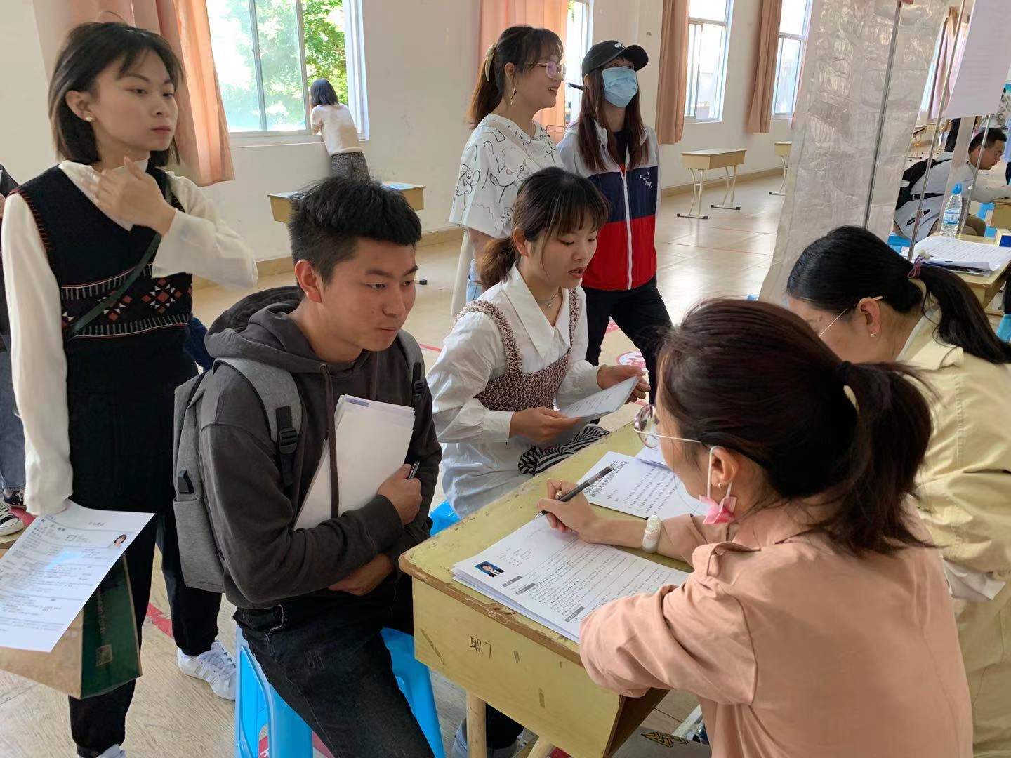 校园招聘会上,各高校应届毕业生求职意向强烈,纷纷对意向岗位进行了认真地询问。应聘者仔细阅读招聘简章,穿梭于会场中间,有时驻足观望,有时互相交流。会场求职气氛高涨。根据云南城市建设职业学院2021年04月-05月招聘简章内容,人力资源处成员通过对意向求职者讲解各岗位工作内容、性质及学校薪酬等相关福利政策,后续将会根据学校进一步招聘安排,统一通知求职者到校进行后续沟通,确定具体意向。